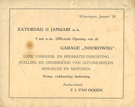 De auto heette nog automobiel in de tijd dat mijn grootvader Frans (sr.) van Ooijen in 1930 zijn garage oprichtte en in het dorp Wateringen hadden alleen de dokter en een paar andere notabelen een auto.